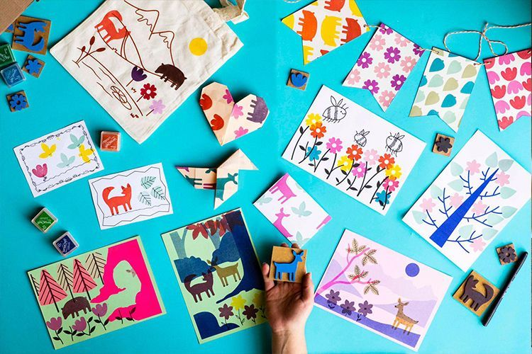 Los niños recrearán una imprenta y trabajarán el proceso creativo de un cartel utilizando sellos para la creación del arte. Aprenderán el uso de este material para la composición e impresión de un cartel.