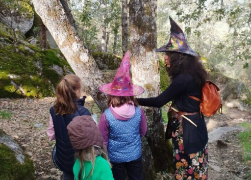 Paseo por el bosque acompañado por la Bruja Maruja y taller de pociones al aire libre. Naturaleza, historia y diversión en familia.