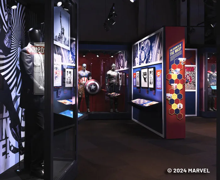 Exposición en IFEMA con bocetos, vestuarios y figuras de tamaño real de los superhéroes de Marvel.
