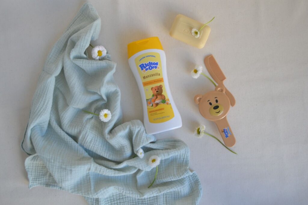 En Ricitos de Oro contamos con la loción corporal de la líne Manzanilla, que hidrata y suaviza la delicada piel del bebé desde sus primeros meses de vida.