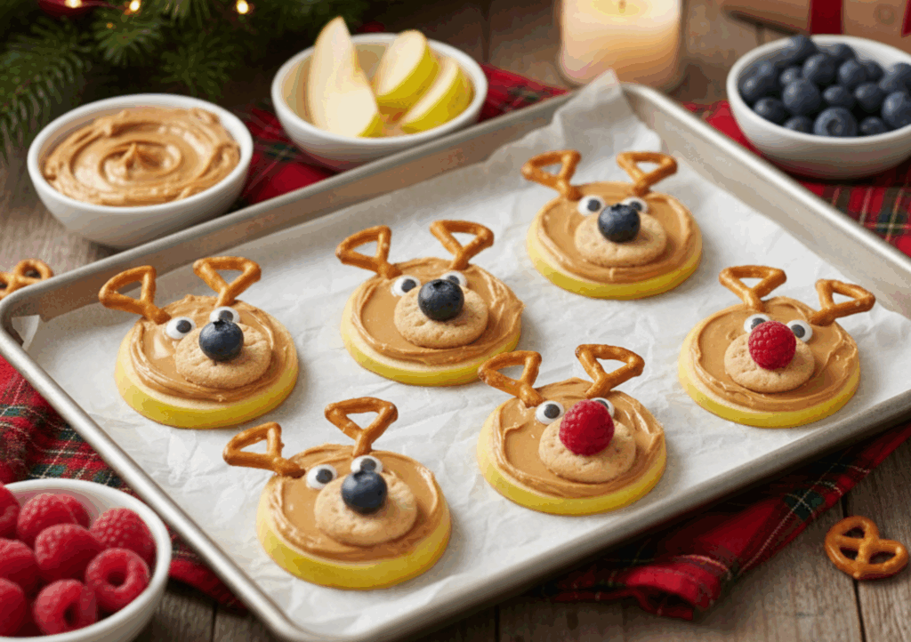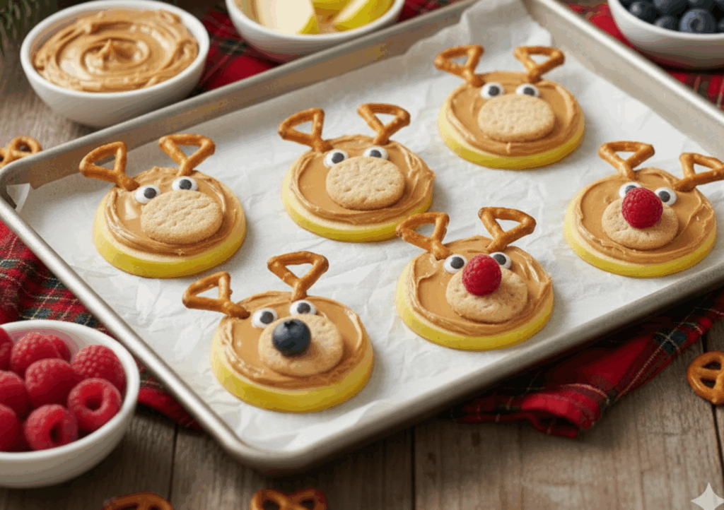 Por eso hoy en Ricitos de Oro te traemos una idea deliciosa y muy fácil de preparar con tus peques: renos navideños hechos con manzana, galleta y un toque crujiente de pretzels saladas. Una receta tierna, divertida y perfecta para cocinar en familia, compartir en las tardes frías y disfrutar mientras los niños desarrollan su imaginación.